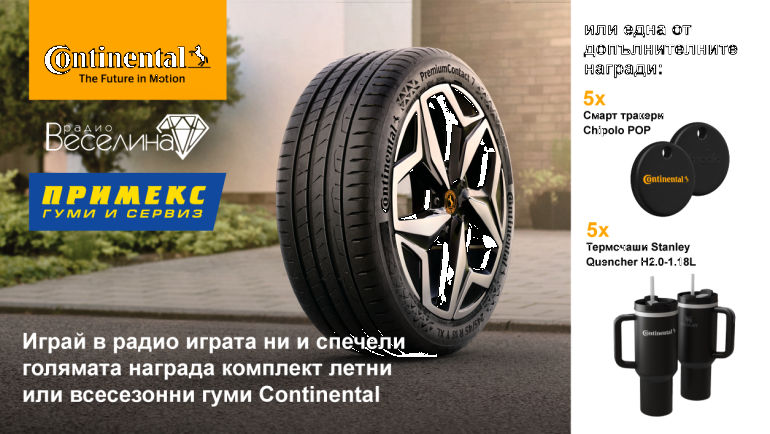 Радио Веселина, Continental и центрове за гуми Примекс ти дават възможност да спечелиш страхотни награди!