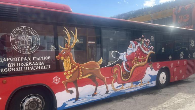 Коледен автобус се движи във Велико Търново специално за децата от детските градини. Зад волана е Дядо Коледа, който посреща децата, за да ги отведе до коледния базар в парк „Марно поле“.