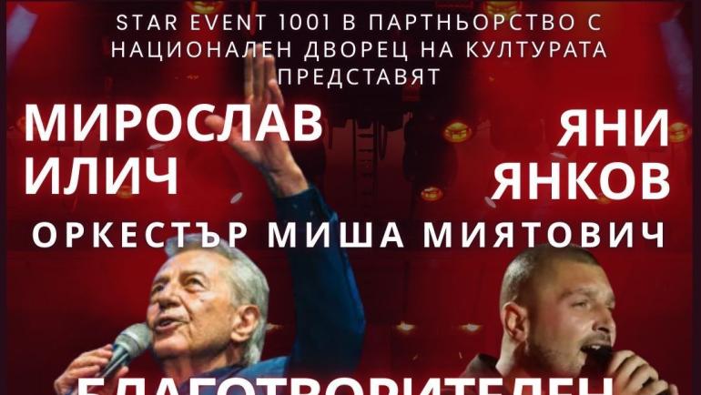 Легендата на сръбската музика Мирослав Илич и българският финалист на най-престижното музикално шоу на Балканите "Звезде гранда" Яни Янков се събират на една сцена с кауза. Обичаните изпълнители ще обединят гласове под акомпанимента на оркестъра на Миша Миятович в специален благотворителен концерт.